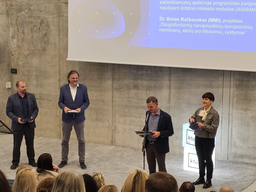 Medžiagų mokslo instituto vyriausiasis mokslo darbuotojas prof. Tomas Tamulevičius apdovanotas nominacija “Už jaunųjų tyrėjų ugdymą”, o vyriausiasis mokslo darbuotojas dr. Simas Račkauskas pelnė apdovanojimą “Metų mentorystė” už vadovavimą podoktorantūros stažuotei “Daugiafunkcinių nanopluoštinių kompozicinių membranų, skirtų oro filtravimui, vystymas”. Taip pat mokslo darbuotoja dr. Erika Rajackaitė buvo pasveikinta įstojus į Kauno technologijos universiteto projektų vadovų gretas.